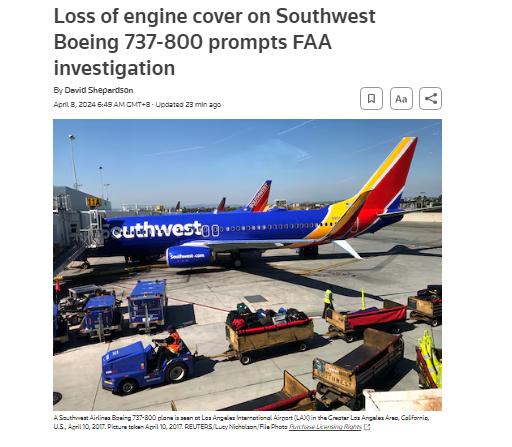 美國西南航空公司表示,維修團隊正在檢查出現(xiàn)事故的飛機。美國聯(lián)邦航空管理局稱,將對此事進行調(diào)查。