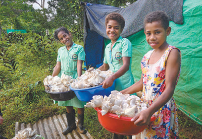 中國政府面向斐濟(jì)等太平洋島國推廣菌草技術(shù),推動(dòng)當(dāng)?shù)亟?jīng)濟(jì)發(fā)展,助力當(dāng)?shù)孛裆纳啤D為在斐濟(jì)奈塔希里乳業(yè)婦女組織菌草技術(shù)示范點(diǎn),孩子們正在幫忙采菇。