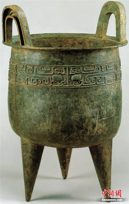 盤龍城遺址出土的青銅大圓鼎。盤龍城遺址博物院供圖