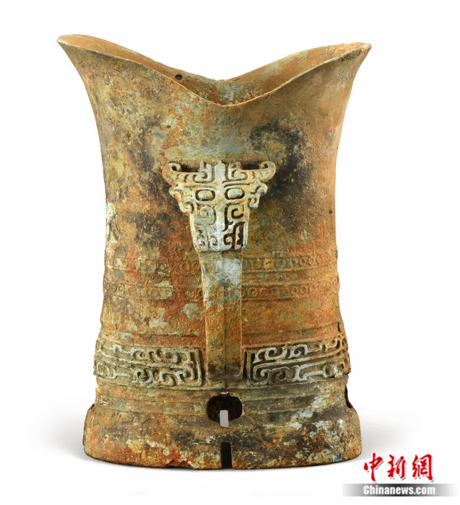 盤龍城遺址出土的銅帶鋬觚形器。盤龍城遺址博物院供圖