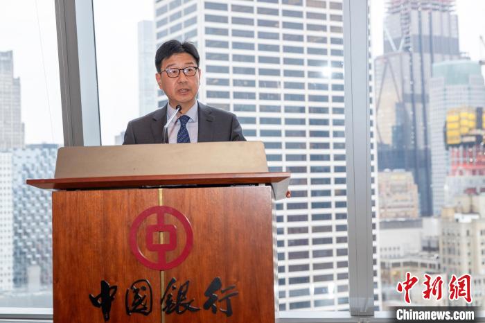 當(dāng)?shù)貢r(shí)間4月10日,以“經(jīng)濟(jì)合作與文化傳承的雅致之約”為主題的“甘肅雅集”推介活動(dòng)在美國紐約曼哈頓舉行。圖為甘肅省委常委、副省長張錦剛致辭。 中新社記者 廖攀 攝