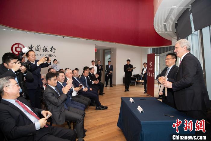 當(dāng)?shù)貢r(shí)間4月10日,以“經(jīng)濟(jì)合作與文化傳承的雅致之約”為主題的“甘肅雅集”推介活動(dòng)在美國紐約曼哈頓舉行。圖為甘肅省人民對外友好協(xié)會(huì)同美中綠色基金會(huì)簽署了諒解備忘錄?! ≈行律缬浾?廖攀 攝