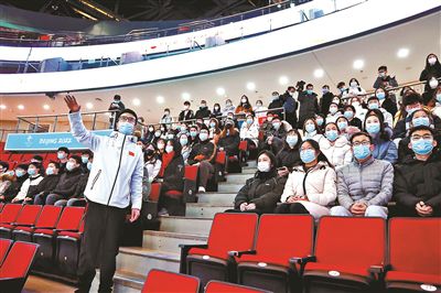 在現(xiàn)場(chǎng),陳大鵬通過(guò)“由內(nèi)及外”“由下至上”的方式,將場(chǎng)館的競(jìng)賽層、觀眾層、包廂層等流線(xiàn)以及各點(diǎn)位進(jìn)行了詳細(xì)的講解,并以“你需要知道的25件事”為主題,為志愿者們講解了作為場(chǎng)館工作人員必須遵守的各項(xiàng)規(guī)章制度?!斑@25件事包括志愿者在場(chǎng)館工作的方方面面,既有場(chǎng)館日常管理、防疫規(guī)定,又有志愿者工作期間個(gè)人生活及行為規(guī)范、工作紀(jì)律和文明禮儀等。”陳大鵬說(shuō)。