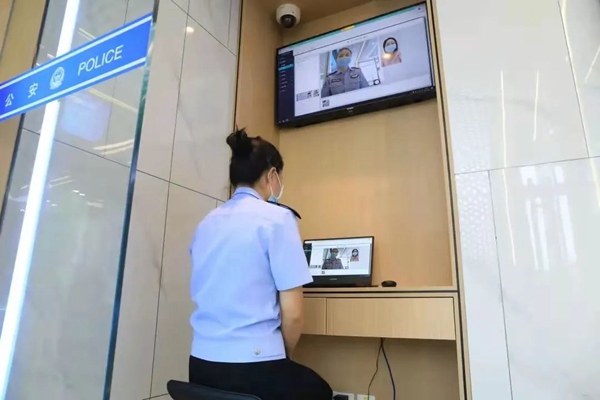 “鹽之e警”窗口民警為群眾遠(yuǎn)程辦理業(yè)務(wù)。鹽城市公安局供圖