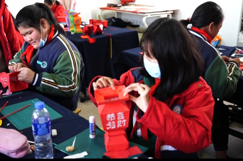 曹村鎮(zhèn)學校曼妙燈彩課程指導老師李仁秋說:“做一個虎年主題的燈彩,來迎接中國傳統(tǒng)的春節(jié),也感受下中國傳統(tǒng)的文化?!?/p>