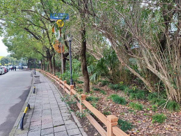 南龔居委會(huì)所在的虹橋路2222弄,涉及5個(gè)小區(qū)、2所學(xué)校,而從弄堂入口處起,長(zhǎng)達(dá)百米的“花園”沿線植被雜亂、空間荒蕪,外緣圍欄阻擋,且沒有入口,不僅影響居民區(qū)的美觀度,也影響了居民的生活舒適度。