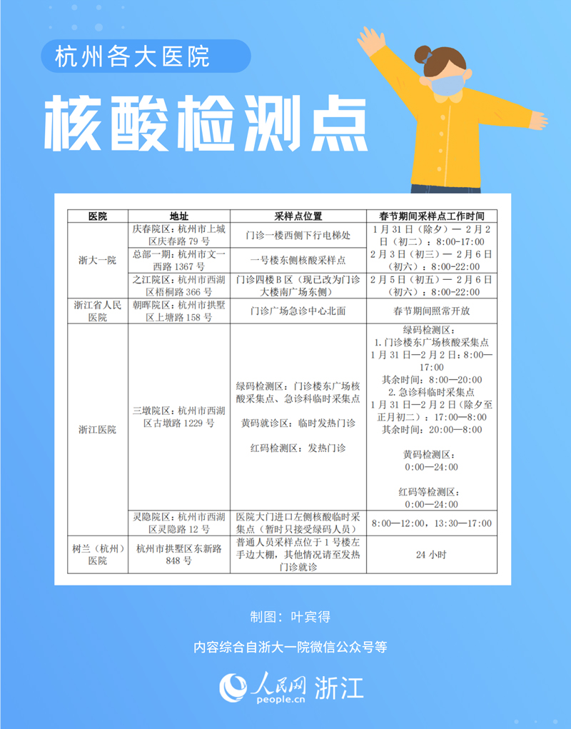 1月26日,杭州出現(xiàn)新一輪疫情,需要做核酸檢測的人數(shù)量陡增。做核酸檢測時(shí),哪些事項(xiàng)要注意?春節(jié)期間,杭州各大醫(yī)院核酸檢測時(shí)間地點(diǎn)是否有變?請收好這份小貼士。