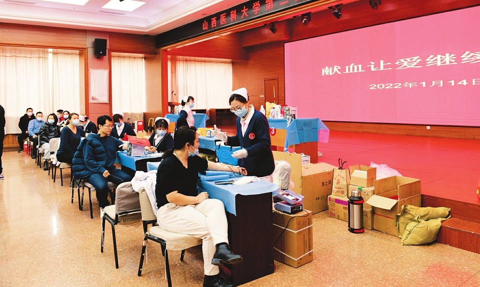近日,山西醫(yī)科大學(xué)第二醫(yī)院一年一次的義務(wù)獻(xiàn)血“獻(xiàn)血讓愛(ài)繼續(xù)跳動(dòng)”公益活動(dòng)在該院影像樓進(jìn)行,醫(yī)務(wù)人員、職能部門(mén)和后勤工作人員共264人參與。大家依次填表、體檢、化驗(yàn)、采血,積極獻(xiàn)出一份愛(ài)心,以實(shí)際行動(dòng)踐行對(duì)生命的關(guān)愛(ài),體現(xiàn)了強(qiáng)烈的社會(huì)責(zé)任感。(周慧芳 孟亮圖/文)