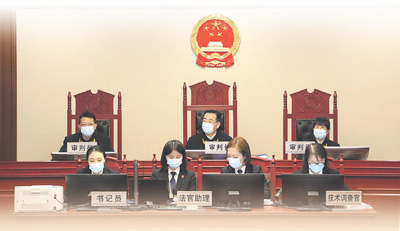 最高人民法院知識(shí)產(chǎn)權(quán)法庭調(diào)派技術(shù)調(diào)查官(右一)支援寧夏回族自治區(qū)銀川市中級(jí)人民法院技術(shù)類知識(shí)產(chǎn)權(quán)案件審判。