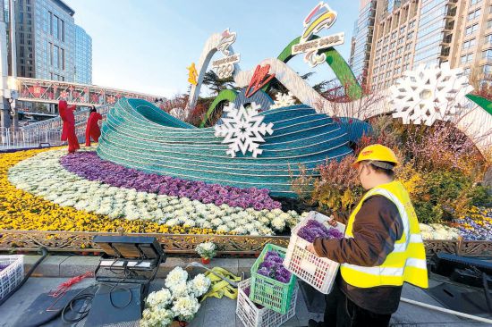為冬殘奧會進(jìn)行景觀布置 14萬株“超級鮮花”擺上街頭
