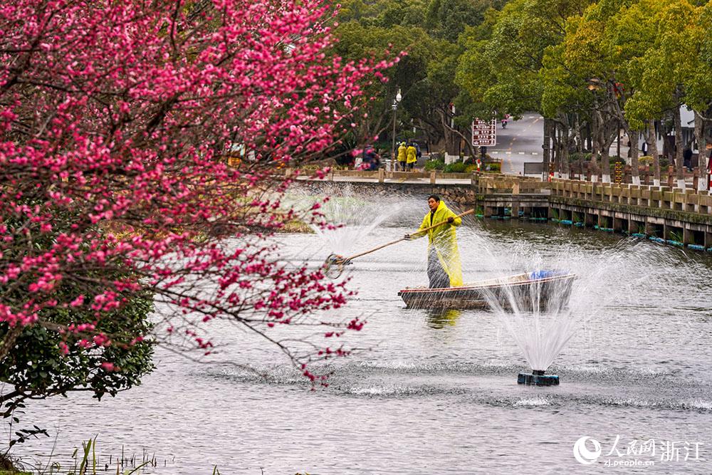 盡管天空飄著細(xì)雨,舟山普陀山司基畈河上,河道保潔員仍在辛勤工作著,打撈水面漂浮物,保護(hù)水生態(tài)環(huán)境……守護(hù)一汪碧綠的清水,已成為普陀山人的習(xí)慣。