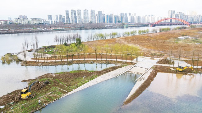 3月7日,金華市區(qū)五百灘公園西側(cè)區(qū)塊上,挖掘機(jī)正在清理沿江地帶。目前,五百灘公園景觀提升改造工程正在進(jìn)行中。據(jù)了解,西側(cè)區(qū)塊將打造成花海,局部打造成濕地景觀,并對(duì)沿江樹(shù)木進(jìn)行修整,修繕欄桿,優(yōu)化親水平臺(tái),設(shè)置景觀座椅,修建濱水棧道,拓展活動(dòng)空間,為市民打造一個(gè)植被豐富、風(fēng)景宜人的親水休憩游玩空間。(胡肖飛)