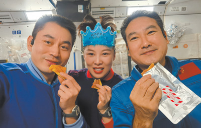 執(zhí)行迄今時間最長一次太空飛行,神舟十三號航天員趕上了第一次在太空跨年,第一次在空間站過春節(jié)。在地面團隊的精心保障下,航天員們除夕夜為人們送上來自太空的新年祝福,在空間站度過了年味十足、充實精彩的虎年春節(jié)。從太空出艙、“天宮課堂”開講,到手控遙操作完成貨運飛船與空間站組合體交會對接試驗,從中國女航天員首次太空漫步,到3名航天員太空飛行累計超100天,太空“出差”期間,航天員們開展了一系列空間科學實驗和技術(shù)試驗,刷新了一個又一個中國航天紀錄,為中國空間站正式建成打下堅實基礎。
