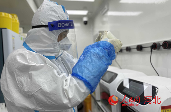 “在華大技術(shù)人員的協(xié)助下,來自河北各地支援的醫(yī)務(wù)人員已完成對生物安全知識、儀器設(shè)備使用注意事項等方面的工作梳理和培訓(xùn)。實驗人員在輪班的情況下,保證實驗室能夠24小時運轉(zhuǎn)以達(dá)到相應(yīng)的日檢測通量?!蓖踉品颊f。(林福盛、吳源生)