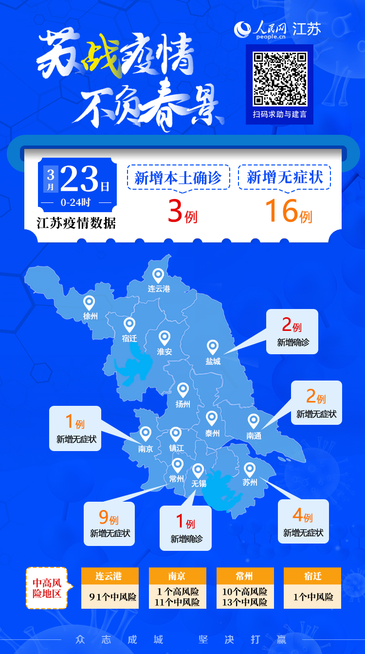 3月23日江蘇新增本土確診病例3例 本土無癥狀感染者16例