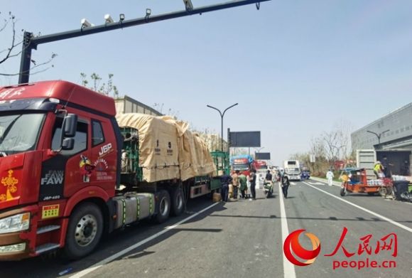 通農(nóng)物流臨時交易區(qū)內(nèi),一輛輛卡車運來各類新鮮的蔬菜。人民網(wǎng)記者 王繼亮攝