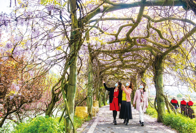 紫藤長(zhǎng)廊花綻放