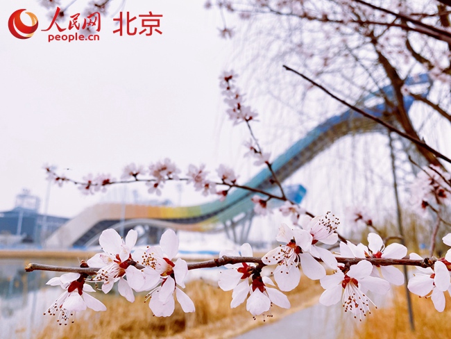 “太酷了!”專(zhuān)程來(lái)打卡的小郭一躍而起,與“雪飛天”來(lái)了個(gè)合影。還有的游客手舉可愛(ài)的冰墩墩和雪容融,以大跳臺(tái)和冷卻塔為背景拍下了照片。眼下,首鋼園群明湖畔的桃花已滿(mǎn)上枝頭,不少市民游客趕在這個(gè)季節(jié)前來(lái)一睹“雪飛天”的雄姿。
