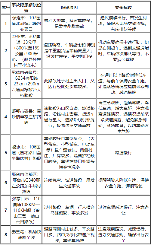 清明假期河北省8處交通事故多發(fā)路段