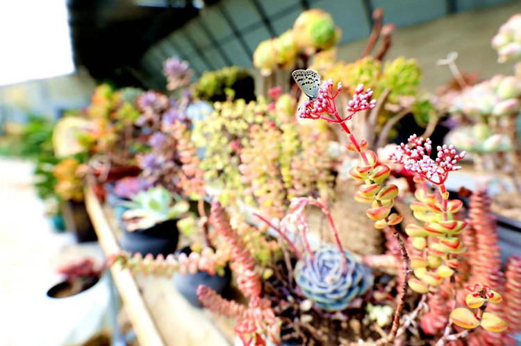 “目前我們基地投資建設(shè)的6個(gè)農(nóng)業(yè)溫室大棚,占地面積6700平方米,可售多肉品種達(dá)170余種,春秋兩季是多肉植物生長(zhǎng)最旺盛的季節(jié),溫差大,且顏色鮮艷。目前,我們的主要工作就是對(duì)多肉植物進(jìn)行繁殖,根據(jù)植物種類的不同,繁殖的方法主要有播種繁殖、扦插繁殖、分株繁殖以及嫁接繁殖?!倍嗳饣刎?fù)責(zé)人路秀華介紹說(shuō)。