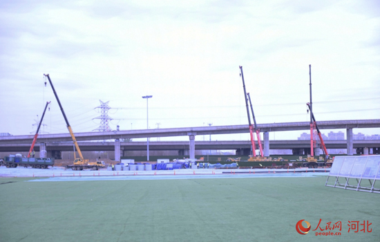 走進(jìn)石家莊高鐵商務(wù)區(qū)施工現(xiàn)場(chǎng),挖掘機(jī)正在施工,重型卡車來回穿梭,工地上一派繁忙。干凈整潔的甬道、出具規(guī)模的網(wǎng)球場(chǎng)、籃球場(chǎng),滿眼綠樹紅花。而在去年8月之前,這里還是低矮破舊,私搭亂建、基礎(chǔ)設(shè)施老化的舊市場(chǎng)。僅僅過了半年,高鐵商務(wù)區(qū)中央綠色體育公園初具規(guī)模,石家莊的“城市客廳”雛形已現(xiàn)。