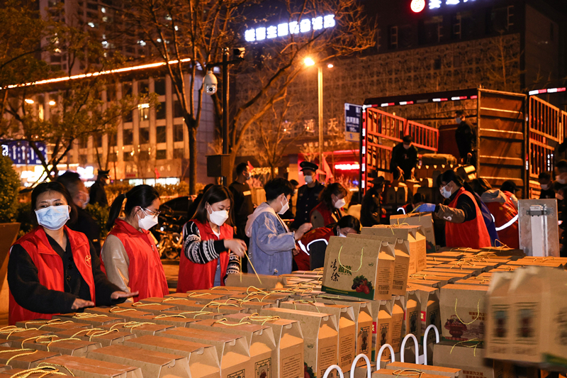 西紅柿、西葫蘆、西蘭花、黃瓜……一箱箱“愛心菜”為轄區(qū)居民提供強(qiáng)有力的生活保障,鼓舞著大家戰(zhàn)勝疫情的信心。(攝影:張瑞鵬)