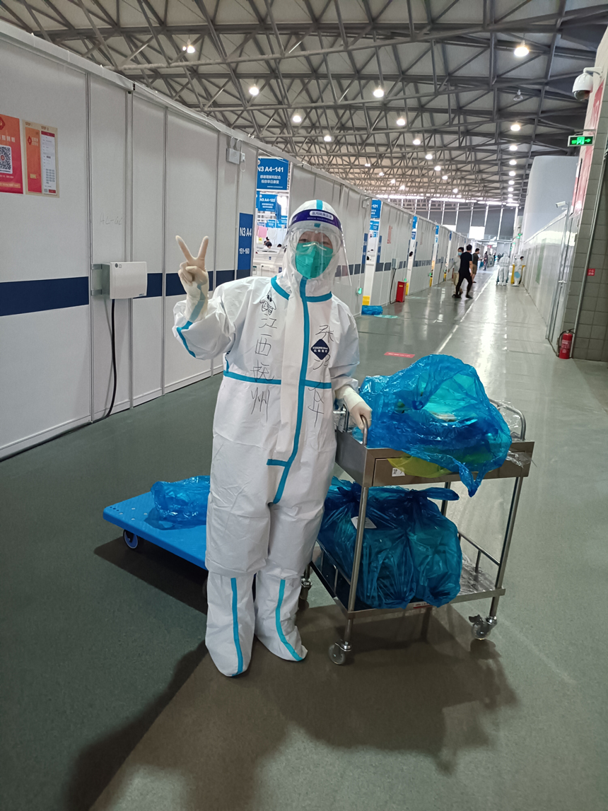 4月7日,張沖華隨隊正式進駐上海新國際博覽中心方艙醫(yī)院N3艙,主要負責(zé)物資補發(fā)和護理,每天進艙時間是4小時,加上交接班時間,每天需要忙碌近八小時。