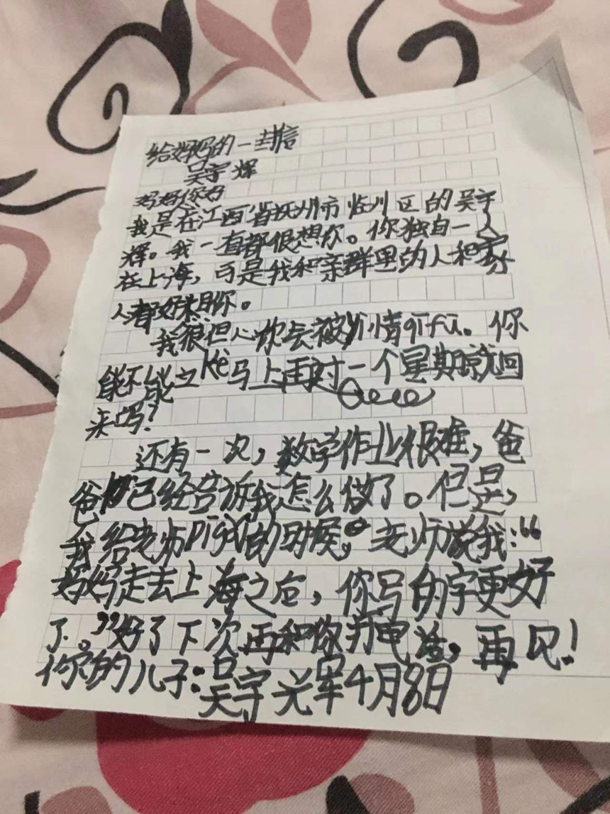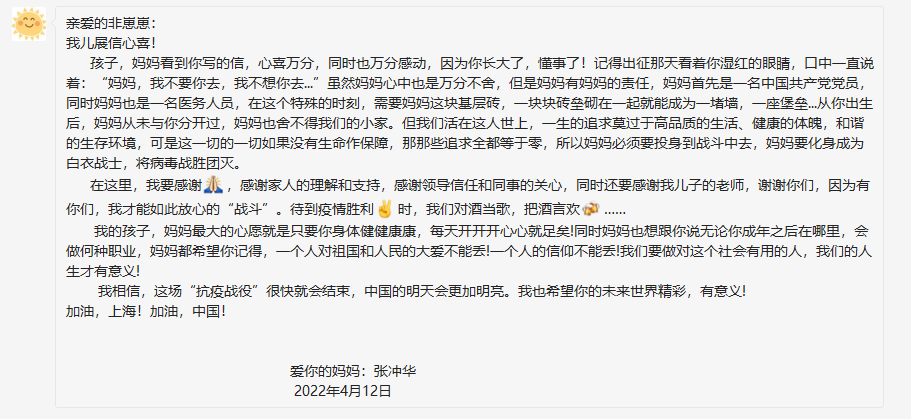 “一個人的信仰不能丟” 援滬護士凌晨給兒子寫下一封家書