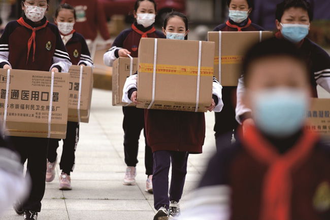 近日,嘉興秀洲一學校的愛心家長,為學校捐贈了5萬只口罩、七八百瓶洗手液和50多把額溫槍,助力學校疫情防控工作,筑牢安全防線。(馮玉坤)