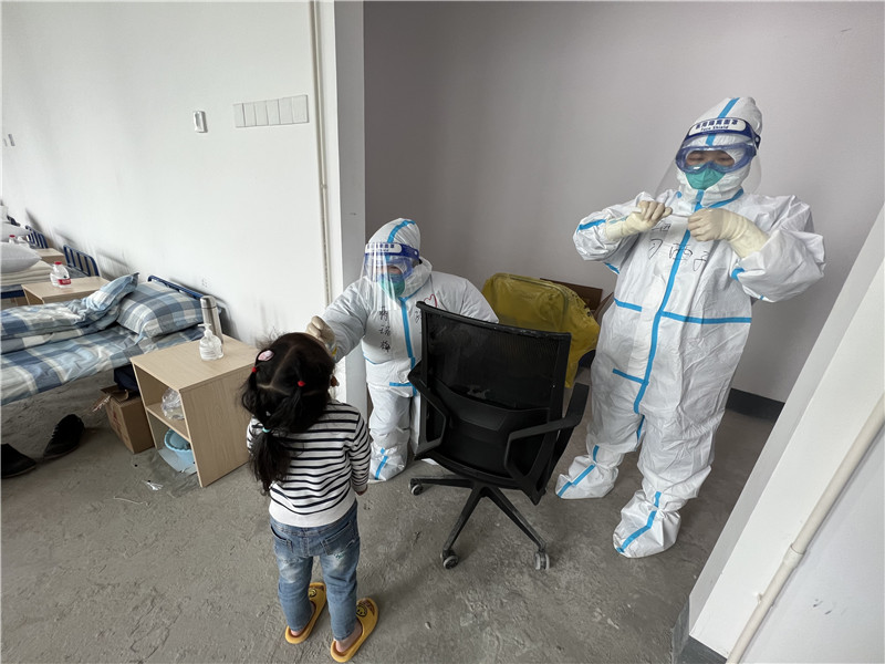 其中一個12歲的小朋友,身邊沒有監(jiān)護(hù)人,方艙點(diǎn)位長、浦東新區(qū)紀(jì)委常委顧明安親自將他托付給專程過來接他的街道防疫工作人員。