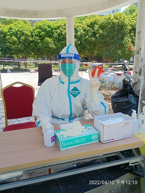 3月以來,上海疫情防控形勢(shì)嚴(yán)峻。來自同濟(jì)大學(xué)附屬東方醫(yī)院的護(hù)士姜蕾蕾在完成科室內(nèi)本職工作外,還積極報(bào)名參與醫(yī)院組織的外出采核工作。從4月3日開始,她便駐扎在浦東陸家嘴街道,負(fù)責(zé)各社區(qū)的核酸大篩查與掃樓任務(wù)。已半個(gè)多月沒有回自己的浦東小家陪陪丈夫與孩子的她,更別提回老家江蘇探望家人朋友們了。
