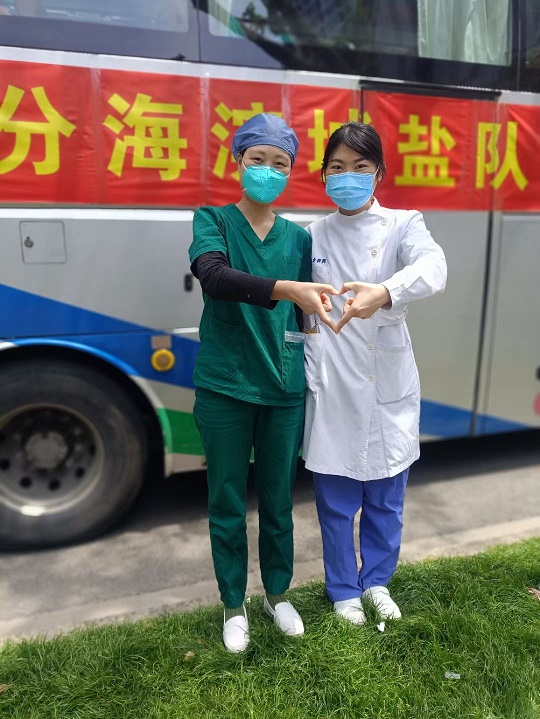 梁慧和姜蕾蕾一樣,在江蘇省鹽城市濱海縣第一人民醫(yī)院腦外科任職護(hù)士。作為一名擁有8年黨齡的老黨員,在得知上海需要支援時(shí),她毫不猶豫地在單位報(bào)名加入了江蘇省援滬醫(yī)療隊(duì)鹽城濱海分隊(duì)。“我知道表妹已在一線日夜奮戰(zhàn)了一個(gè)多月了,這一次,我們姐妹倆也算是一起并肩作戰(zhàn)了”,梁慧笑著說道。