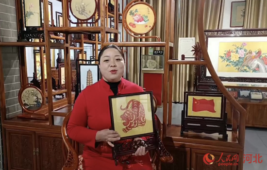 國家級非物質(zhì)文化遺產(chǎn)項目省級傳承人程苗欣制作的虎虎生威緙絲。 人民網(wǎng) 周博攝