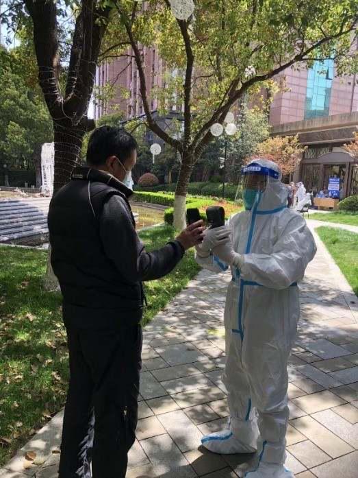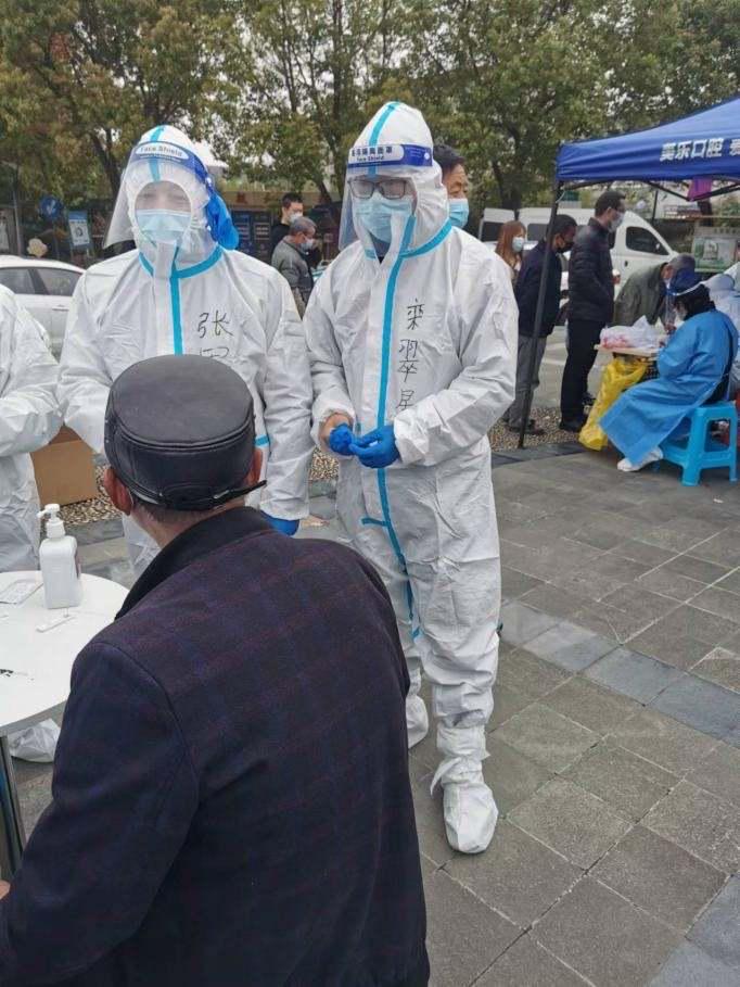 劉子清的父親在社區(qū)參加核酸采樣工作