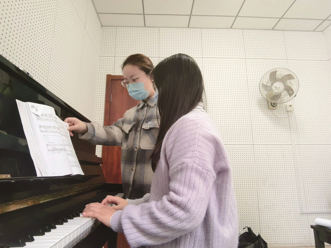 作為“游老師”,游奕軒很嚴(yán)厲?;A(chǔ)的音階一練就是一小時(shí),其間還不斷提醒小袁注意坐姿、要“人琴合一”。課后,也千叮萬囑,讓她多練習(xí)音階轉(zhuǎn)指,多復(fù)習(xí)學(xué)過的知識(shí)。小袁也很勤奮,還主動(dòng)要求額外增加作業(yè)。在她們共同努力下,很快,小袁就能完整彈奏《歡樂頌》。“她的勤奮也鼓勵(lì)著我,更加珍惜時(shí)光,讓自己變得更好?!庇无溶幷f。