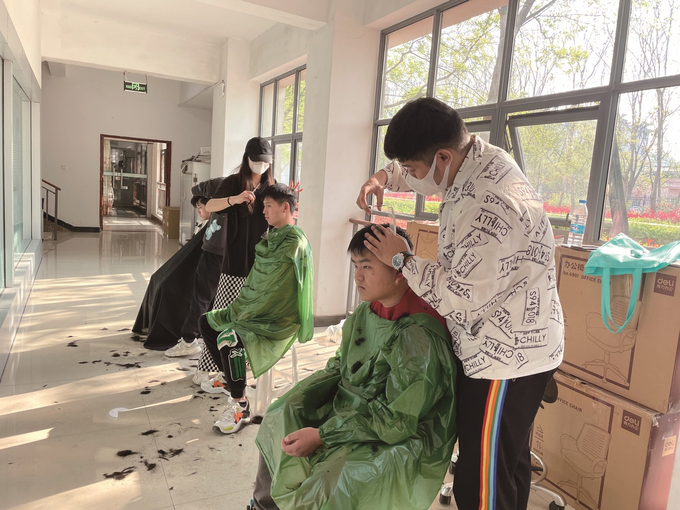 3月29日以來,江蘇農(nóng)林職業(yè)技術(shù)學(xué)院的3名學(xué)生組成“理發(fā)天團(tuán)”,累計(jì)為校內(nèi)200多名師生解決了“頭”等大事。(學(xué)生供圖)