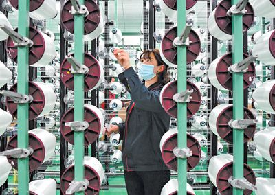 江西省贛州市上猶縣新材料科創(chuàng)產(chǎn)業(yè)園,工人在加工生產(chǎn)電子級(jí)玻纖復(fù)合材料。