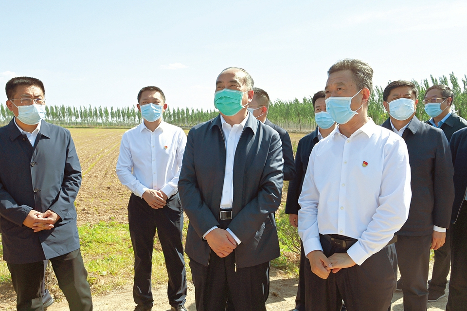 五月十七日下午,省委書記林武來到汾陽市賈家莊鎮(zhèn)古浮圖村,走進(jìn)田間察看玉米、大豆幼苗長勢和土壤墑情。記者史曉波攝
