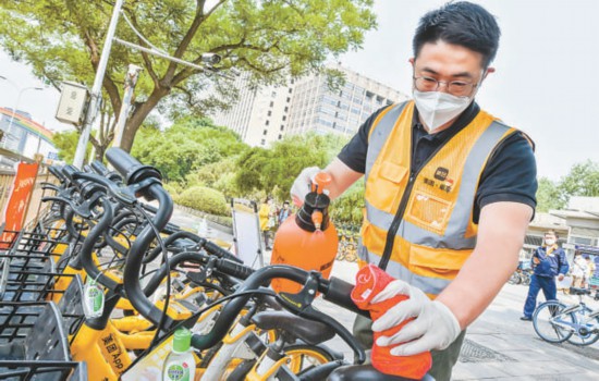 北京:共享單車黨員先鋒隊(duì)上崗 已為2萬(wàn)輛單車配備"共享消毒液"