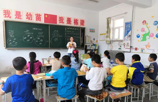楊曉帥正在給孩子們上語文課。 河北省人社廳供圖