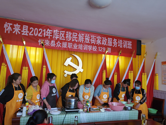 懷來(lái)縣眾援職業(yè)培訓(xùn)學(xué)校對(duì)新保安鎮(zhèn)解放街村部分婦女進(jìn)行中式面點(diǎn)專業(yè)培訓(xùn)。 懷來(lái)縣委組織部供圖
