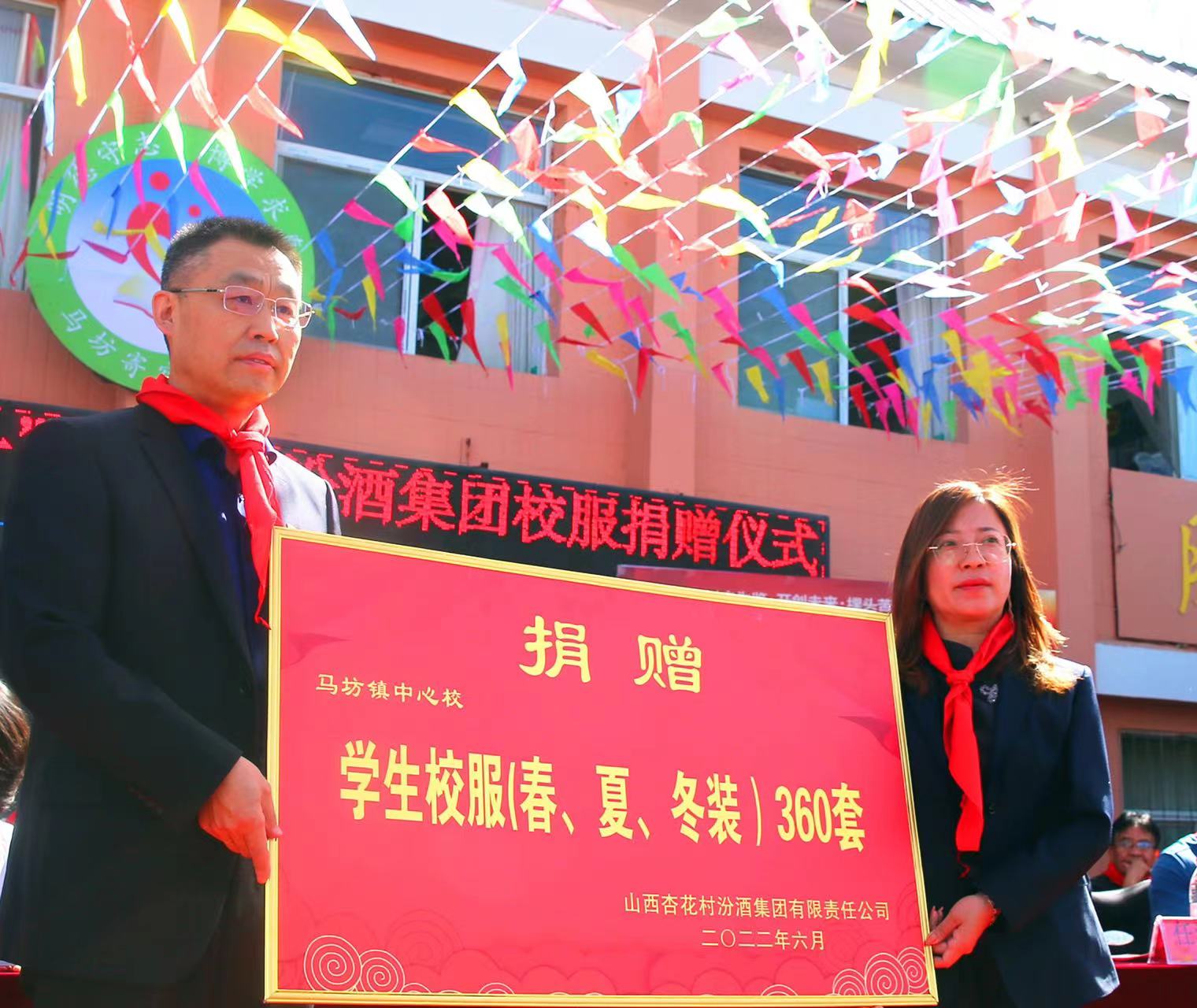 6月1日,呂梁市方山縣馬坊鎮(zhèn)中心校舉行慶“六一”活動暨汾酒集團校服捐贈儀式。當天,汾酒集團為該校捐贈了價值11.6萬元的夏、秋、冬校服360套和360本新華字典。