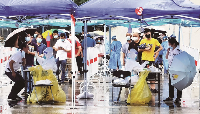 昨日,市民在南京市玄武區(qū)國際展覽中心檢測點有序進行核酸檢測,做好疫情防控工作。本報記者 宋寧 攝