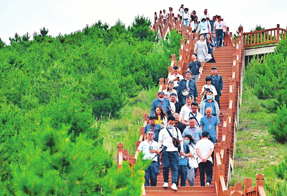 7月17日,來自全國各地的游客在大同市云州區(qū)火山群國家地質(zhì)公園狼窩山景區(qū)暢游。近年來,云州區(qū)完成火山群綠化30萬畝,建設(shè)火山旅游路50多公里,配套建設(shè)了火山地質(zhì)廣場(chǎng)、火山觀景臺(tái)、火山地質(zhì)公園博物館等,深受游客青睞。(劉通 王中勛攝)