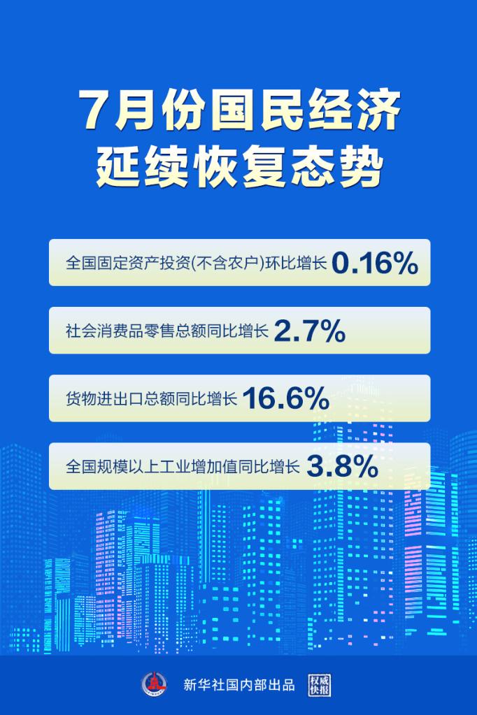 國家統(tǒng)計局:7月份國民經(jīng)濟延續(xù)恢復(fù)態(tài)勢