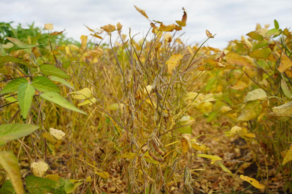 大豆田里進(jìn)入成熟期的大豆(新華社記者王鶴 攝)