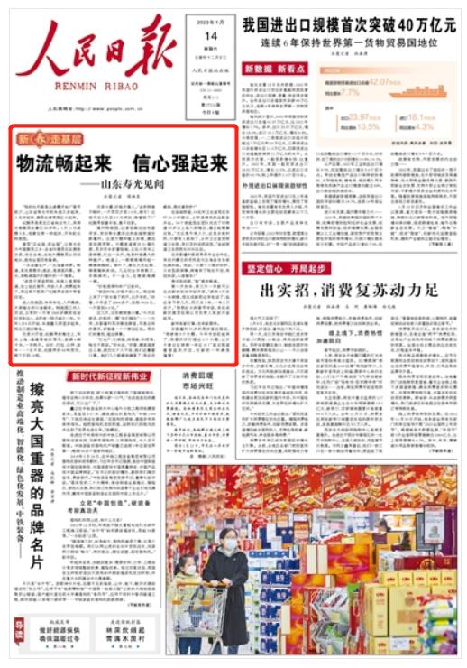 新春走基層 | 人民日?qǐng)?bào)頭版頭條聚焦山東壽光:物流暢起來,信心強(qiáng)起來!