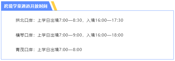 跨境學(xué)童通道開放時(shí)間。圖片來(lái)源:珠海邊檢總站官方微信截圖