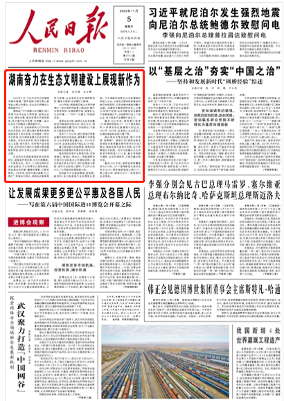 人民日報頭版頭條聚焦丨湖南奮力在生態(tài)文明建設(shè)上展現(xiàn)新作為