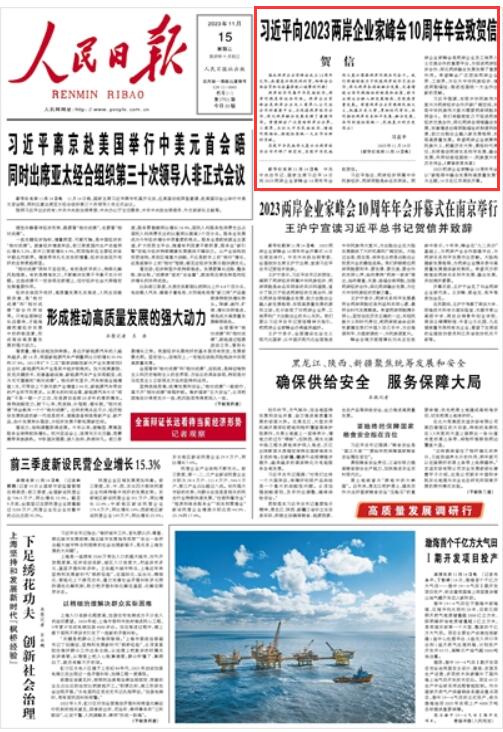 人民日報丨習(xí)近平向2023兩岸企業(yè)家峰會10周年年會致賀信